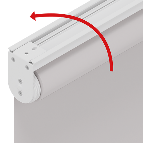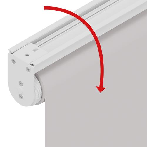 Vertical sliding roller blind with a slow back-on-top system.
