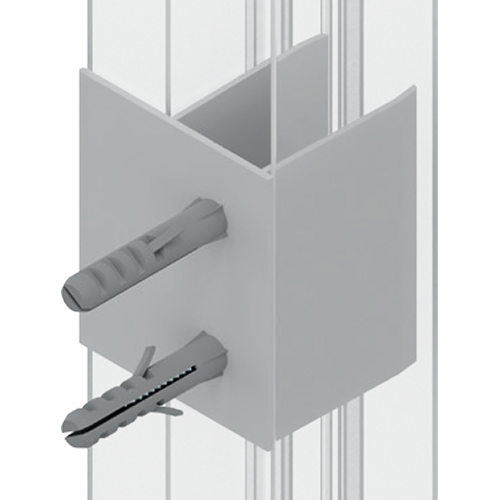 Fastening System: Concealed brackets for tracks, screws/plugs