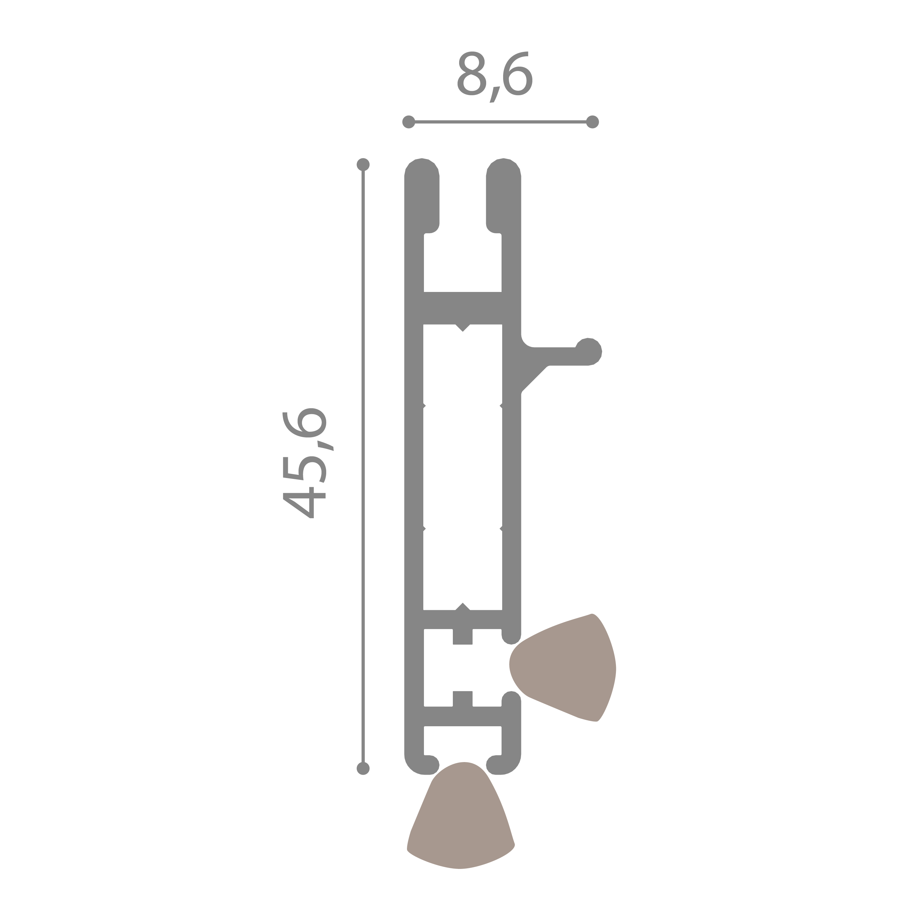 Fastening System: Concealed brackets for tracks, screws/plugs