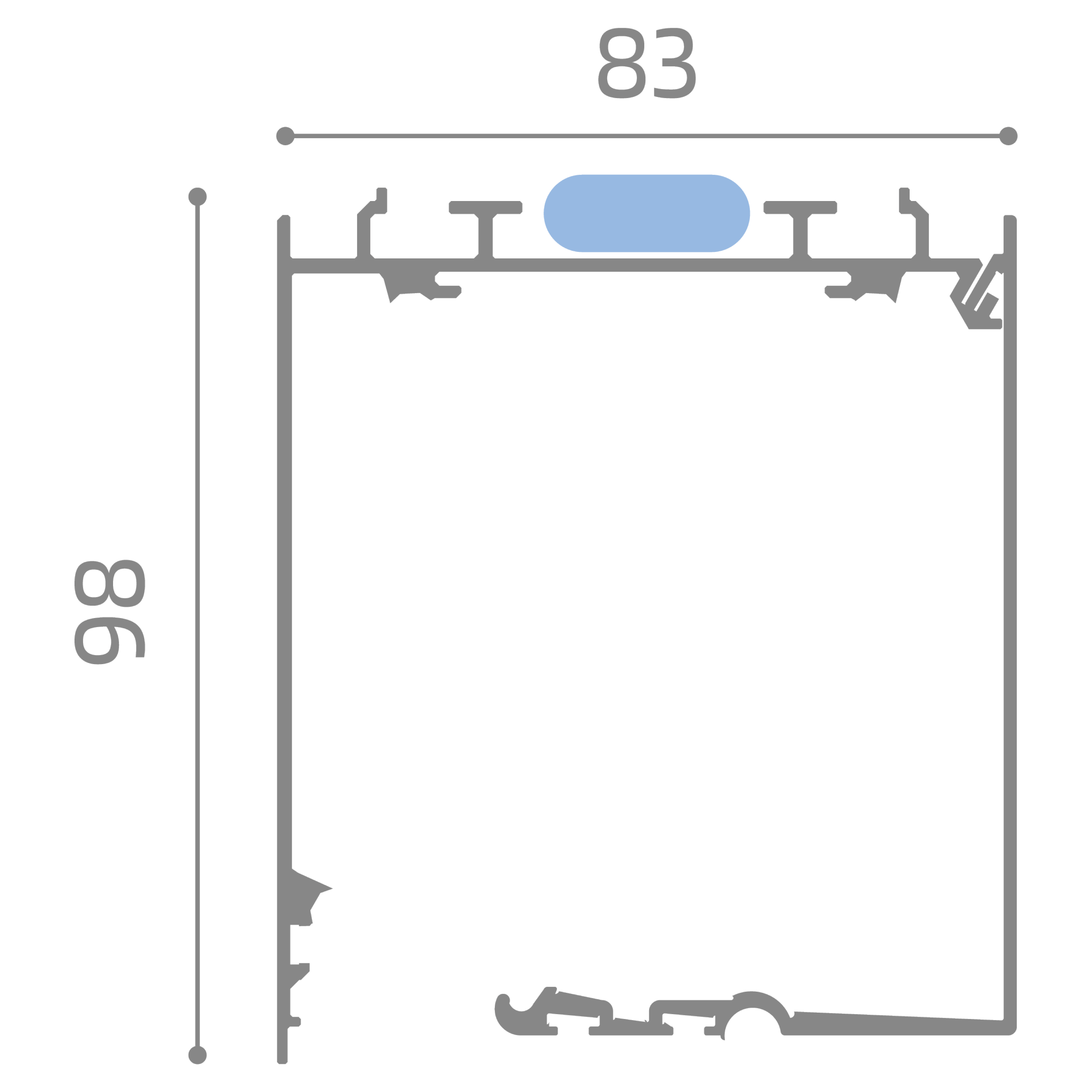 Fixing System: Screw/plug, Clips (snap-on supports)