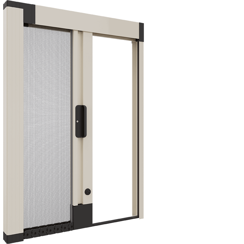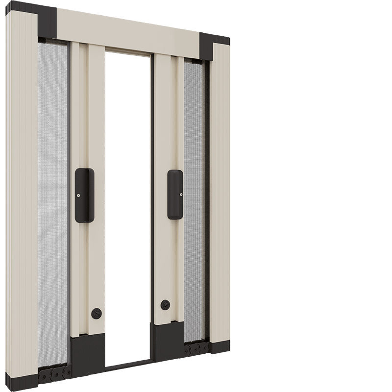 Si tratta di zanzariere senza profili a pavimento in modo da garantire piena libertà ed evitare ogni possibile barriera per il passaggio di persone ed animali domestici.